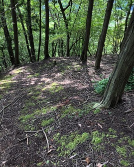 | 文化財の説明 | 塩貝城跡は、桂川支流の胡麻川右岸に広がる丘陵上に位置し、城跡からは胡麻の平地部分が一望できる。城跡は、尾根の南側に堀切を設け、北側の尾根上を城域とする。最大の面積をもつ郭が最高所にあり、その北側にも郭を配す。周囲には畝状竪堀を敷設し西側北辺には堀切に面して土塁も設ける。このさらに北側には、鞍部の堀切をはさんでさらに別の郭を設ける。こちらは通称、鍛冶屋敷と呼ばれており、周囲を土塁で囲まれている。郭や土塁の構造は織豊勢力の影響があるものと考えられるが、一方で畝状竪堀が存在していることから戦国時代後半には機能していたと考えられる。城主は、『丹波志』には塩貝方源、地元伝承では塩貝将監とあり明智光秀との戦いで落城したと伝えている。 |