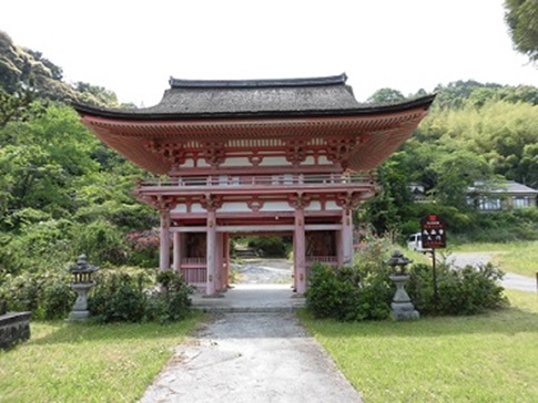 九品寺は、寺伝によると、弘法大師が開基し、承歴年間(1077~81)に白河天皇の子、覚行法親王が中興市とされる。その後、兵火ににより、本尊と仁王門以外は、灰燼に帰したようだが、慶安年間(1649~52)に園部藩主小出氏によって再興された。「寺社類集」によると当寺の鎮守は、竹井区の摩気神社であり、別当は、九品寺の僧が代々、勤めていたようである。境内には、覚行法親王の墓とされる宝篋印塔がある。門の両端には、市指定の文化財、木造仁王像が、寺に悪しきものを入れまいとにらみを利かせて構えている。その隆々たる筋肉表現や激しい動姿の表現からその制作は中世にさかのぼるものと考えられる。 |