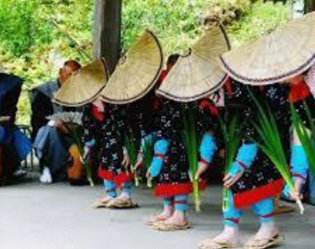 文化財の説明 田原の御田は、1年間の稲作作業過程を実際の作業が始まる前に、模擬的・芸能的に演じて、その年の豊作を祈るものである。タチウド(立人)とも呼ばれるサクタロウ(作太郎)とサクジロウ(作次郎)の男性大人2名、早乙女役の4名の小学生女子と牛役の小学生男子1名に、歌い手は10人ほどの男性の大人で構成する。一連の作業は、2名のタチウドが軽妙なセリフのやりとりと物まねで演じ、田植え等の場面は、早乙女や牛役の小学生が加わる。多治神社に残る記録によると、14世紀ころに田原地区では、同社を中心に宮座が組織され、この御田は宮座の行事の一つであった。また現在は使用していないが、かつて御田に使用した鍬に元禄4年(1691)、鋤に元文4年(1739)と記されている。